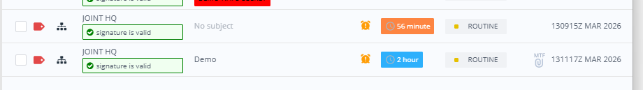 Harrier supports MTF (Message Text Formats) and typically complies with ADATP-3. Earlier versions of Harrier modelled MTFs as attachments in the UI. Although architecturally clean, the resulting user experience proved sub-optimal. Harrier 4.2 UI models an MTF as a special message type that contains only a single MTF.